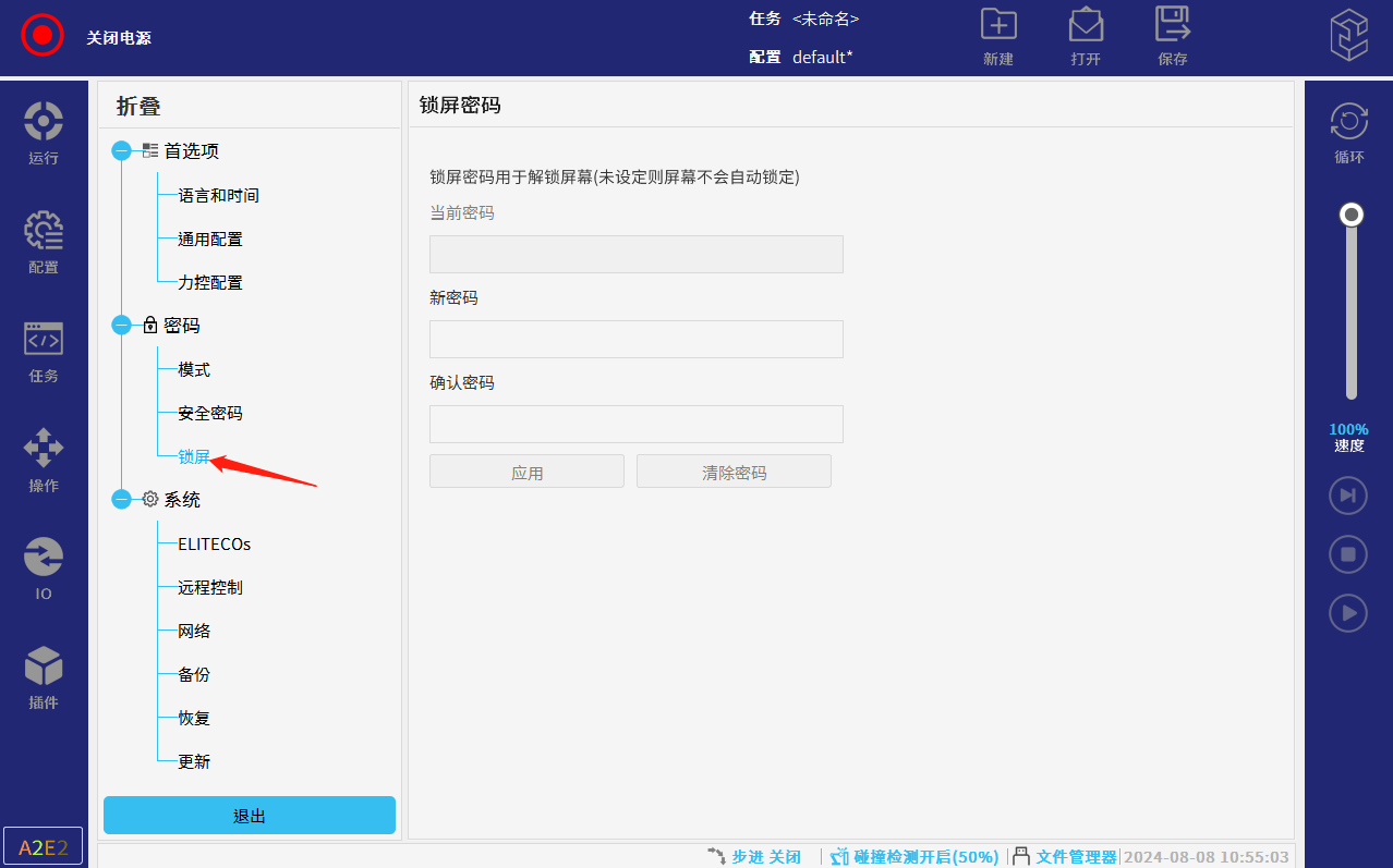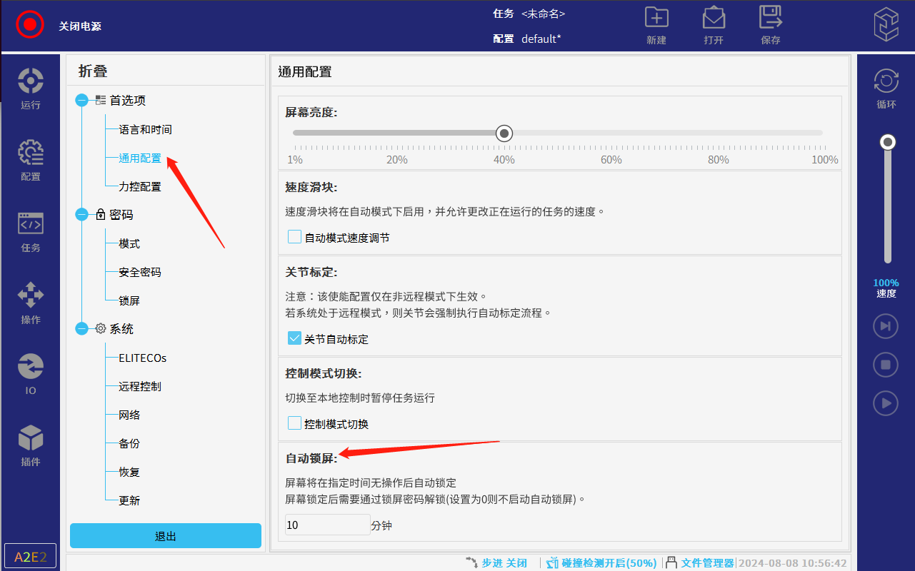 需要注意,2.13之前的版本,屏保只有自動鎖屏,沒有手動鎖屏。設置好自動鎖屏時間 后,規(guī)定時間內(nèi)示教器沒有任何操作,才會鎖屏。