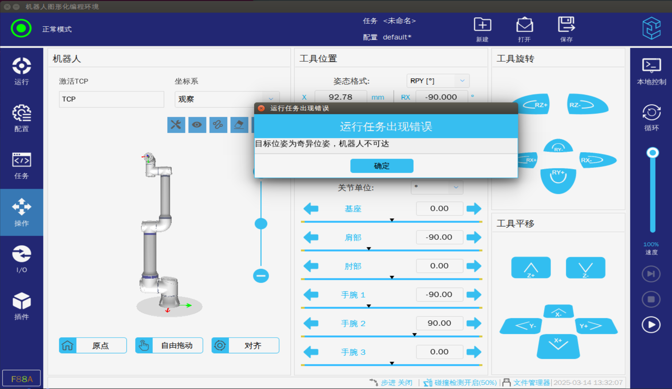 ? 機器人進入奇異點時需要使用關節坐標將機器人移出奇異點