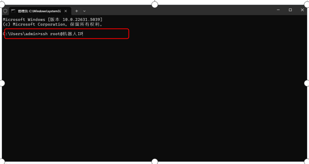 第一步:在電腦上按住Windows+R鍵輸入CMD進(jìn)去圖-1界面,通過(guò)“ssh root@機(jī)器人X86_IP”登錄到控制器內(nèi)部。ssh登錄密碼為elibot。如圖-1紅框所示所示。