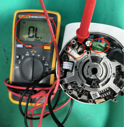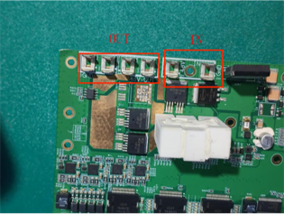 (1)通過三根電機線分別測量外殼、測量 48V 正極的阻抗,可判斷驅(qū)動板是否短路;正常狀態(tài)下所有阻抗均趨近無窮大,任何一根線出現(xiàn)低阻抗,即代表驅(qū)動板內(nèi)部功率器件擊穿或線路短路